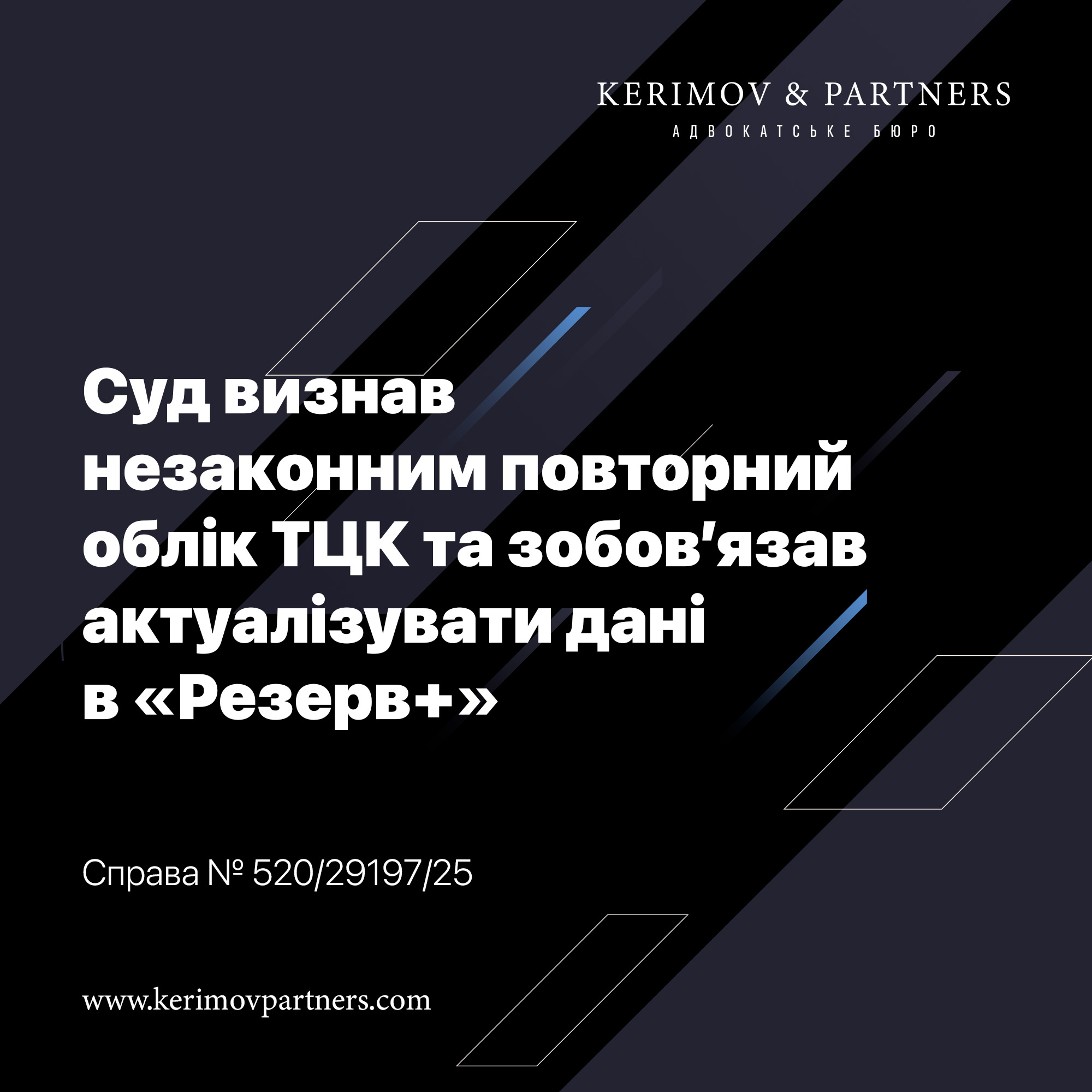 📞 Якщо у вас виникла подібна ситуація (помилки у військовому обліку, даних «Резерв+», протиправні дії ТЦК, скасування протиправного притягнення до адмінвідповідальності, противне внесення відомостей щодо розшуку ) — звертайтесь за правовою(правничою) допомогою до Адвокатського бюро «Керімов та Партнери».